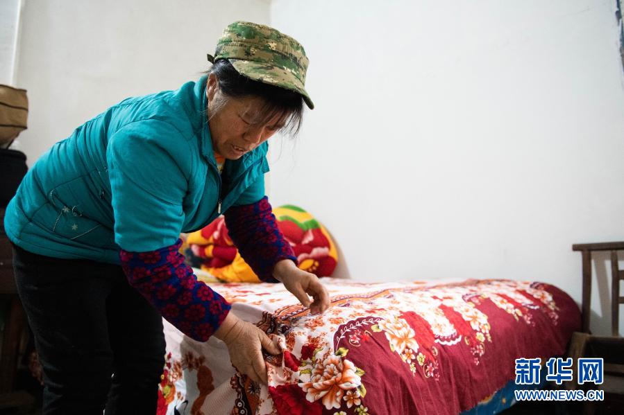 1月29日,在湖南省瀘溪縣浦市鎮(zhèn)麻溪口村,楊玉英為兒子整理被褥。