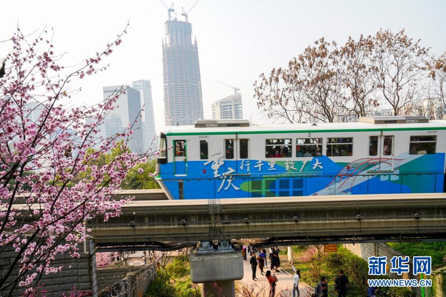 初春時節,重慶氣溫逐漸回暖,暖陽里的山城春意盎然。在重慶軌道交通2號線佛圖關段,山城步道上的梅花簇簇綻放,單軌列車穿越花海,組成一幅賞心悅目的獨特城市景觀。
