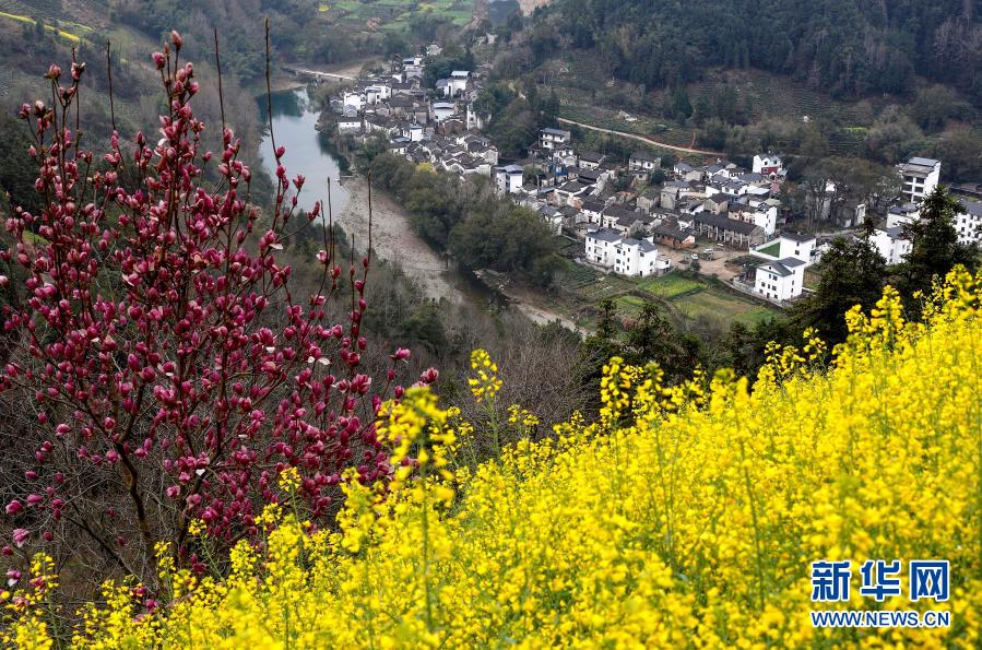 3月2日在安徽省黃山市歙縣石潭村拍攝的春意盎然的美景。新華社發(施亞磊 攝)