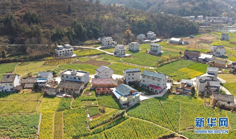 3月3日,安康市漢濱區(qū)迎風(fēng)壩油菜花盛開(無(wú)人機(jī)照片)。新華社記者 陶明 攝
