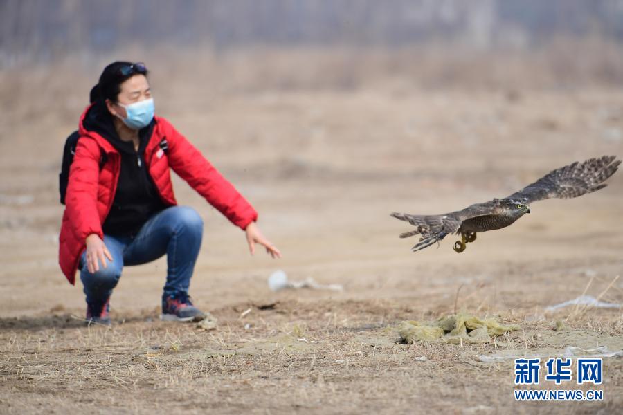 3月14日,沈陽猛禽救助中心志愿者將救助的蒼鷹進行放飛。