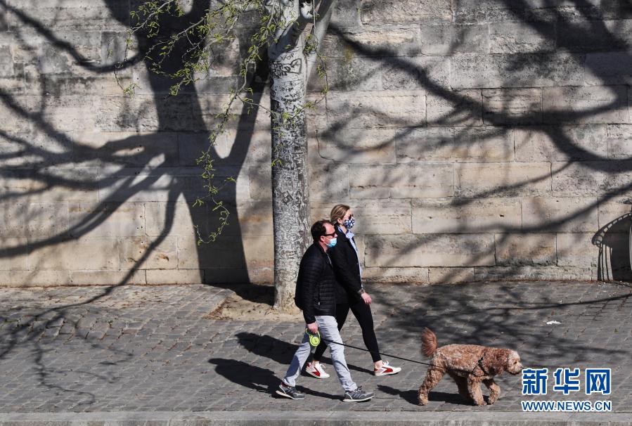 當日,法國巴黎天氣晴好,一些民眾在遵守防疫規定的前提下走出家門,享受春日陽光。新華社記者高靜攝