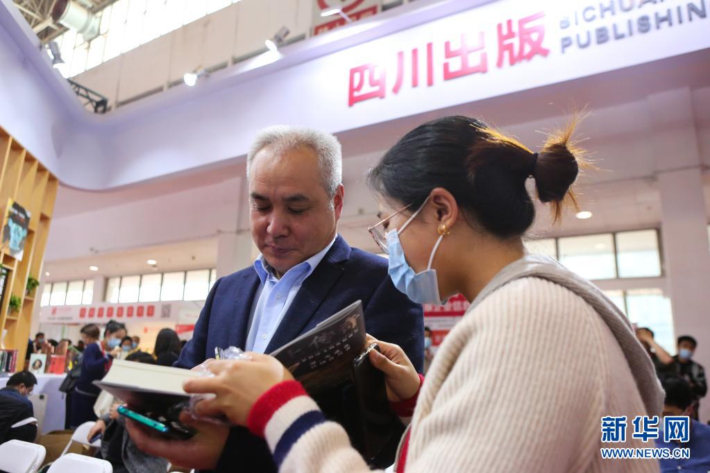 3月31日,在四川出版展區(qū),新書(shū)《海上傳奇》作者馬駿杰為讀者簽名。