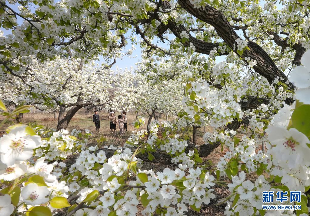 4月11日,游客在遷西縣東蓮花院鎮(zhèn)西山村的梨園內(nèi)賞花。