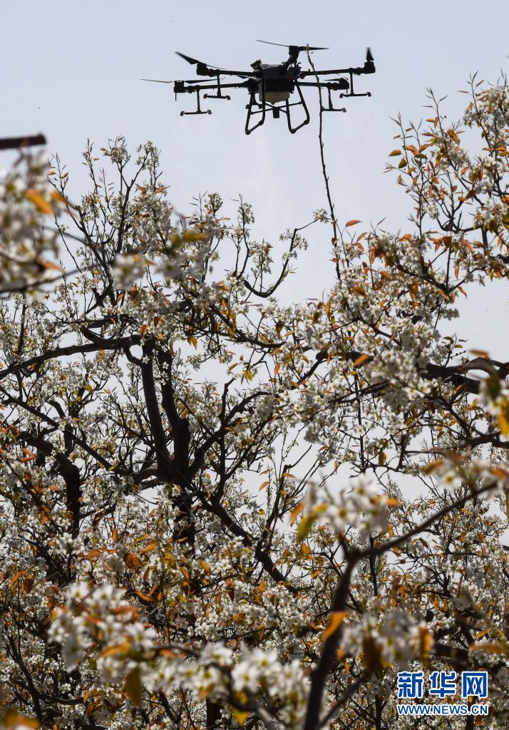 新華全媒+丨新疆:梨農授粉用上無人機
