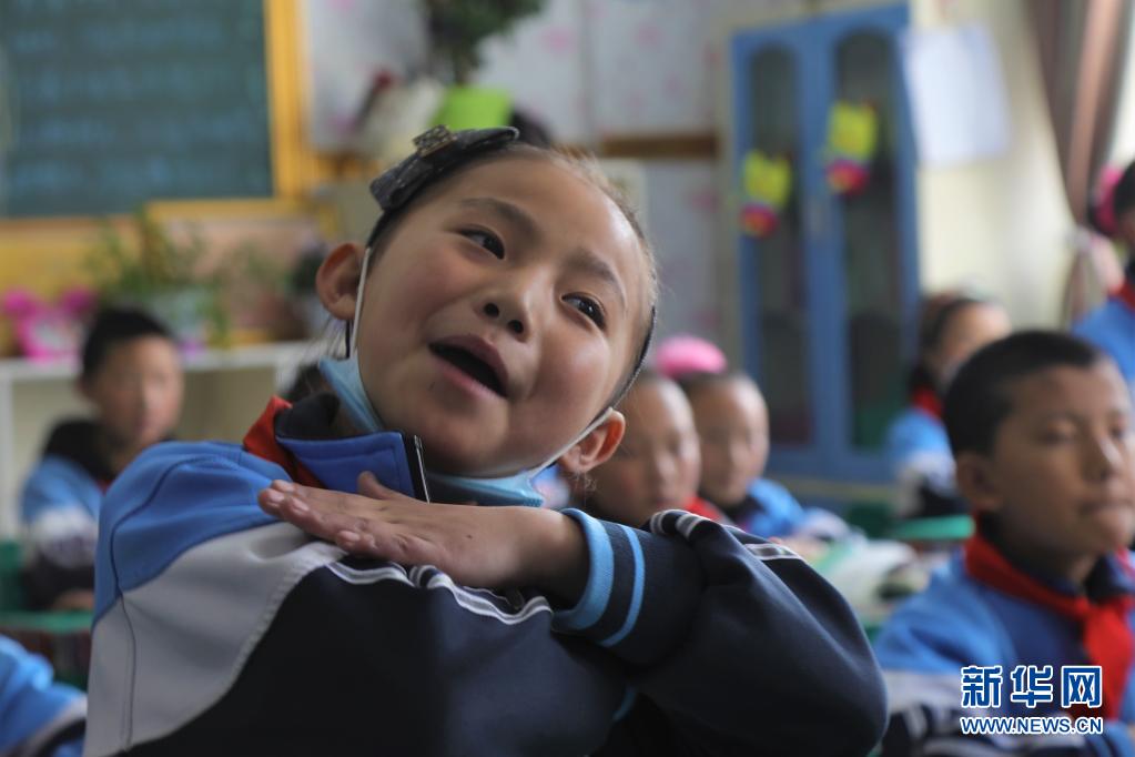 青海省玉樹(shù)藏族自治州玉樹(shù)市第三完全小學(xué)的學(xué)生才卓瑪在課堂上(4月12日攝)。