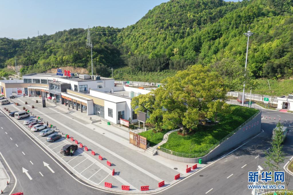 杭州第二繞城高速西復線次塢服務區有3棵樹齡在100年以上的古樹。服務區在建設過程中,將古樹保護起來,現已成為一道特色景觀。新華社發(郭斌 攝)