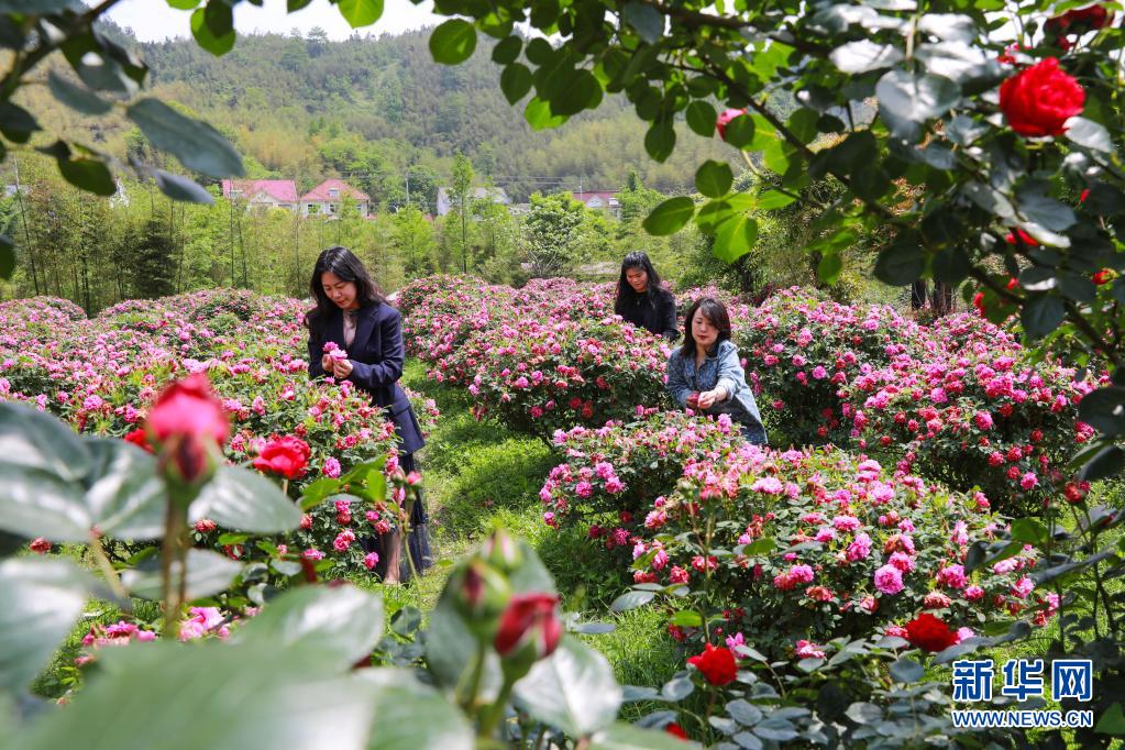 4月26日,游客在位于杭州市臨安區(qū)天目山鎮(zhèn)天目月鄉(xiāng)的示范型村落景區(qū)玫瑰園內(nèi)采摘食用玫瑰花。近日,各地鮮花盛開,吸引人們走出家門踏青賞花。新華社發(fā)(胡劍歡 攝)