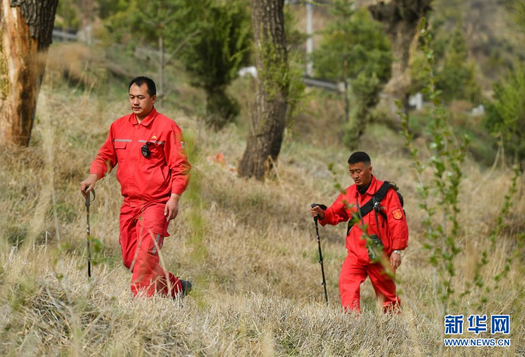 4月27日,巡線隊(duì)員張偉偉(左)、張浩軍在巡線途中。新華社記者 張博文 攝