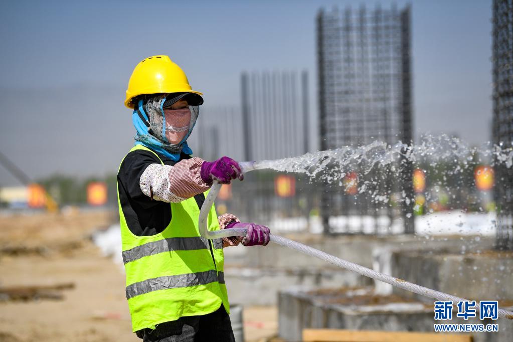 5月1日,寧夏銀川市經濟技術開發區中環50GW(G12)太陽能級單晶硅材料智慧工廠項目的工人在現場作業。