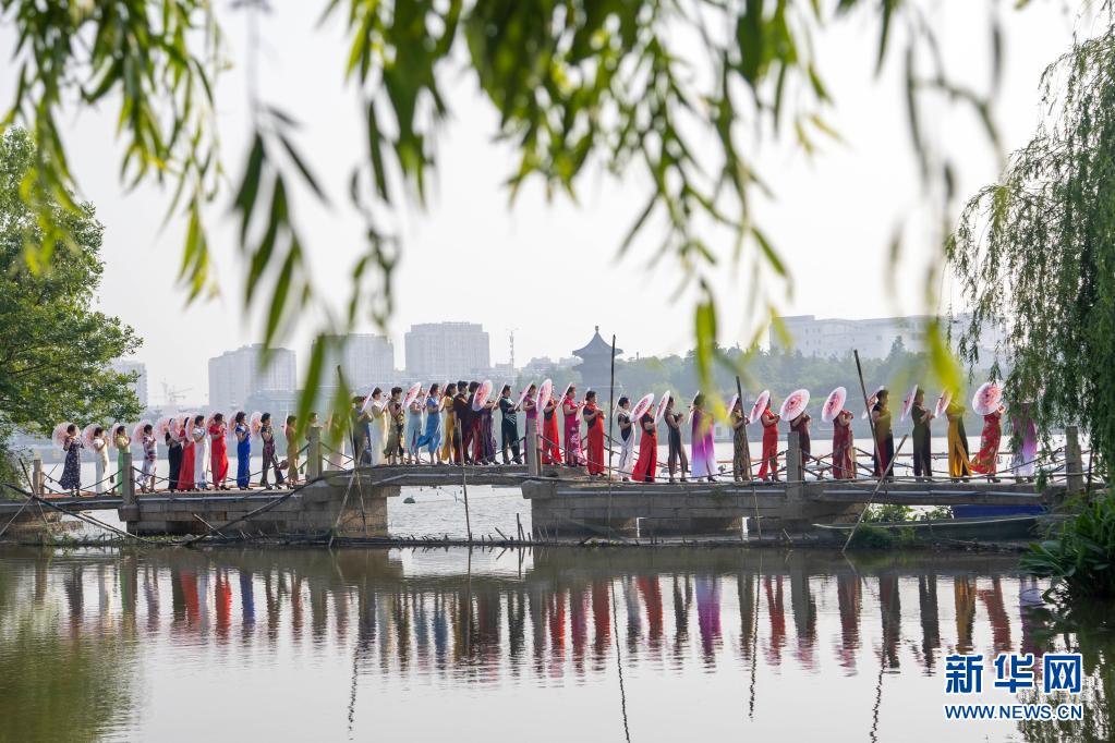 5月9日,江蘇泰州旗袍協會組織數十位媽媽在鳳城河景區進行旗袍秀。