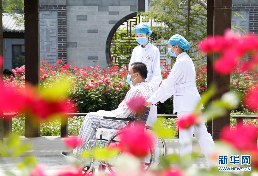 5月11日,河北省邢臺市南和區人民醫院護士在院區陪伴患者,將關懷融入日常護理。