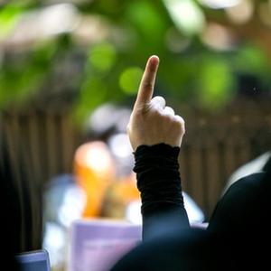 5月14日,一名男子在約旦凱拉邁附近參加抗議示威活動,聲援巴勒斯坦民眾。