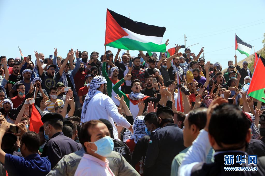 5月14日,人們?cè)诩s旦凱拉邁附近舉行抗議示威活動(dòng),聲援巴勒斯坦民眾。