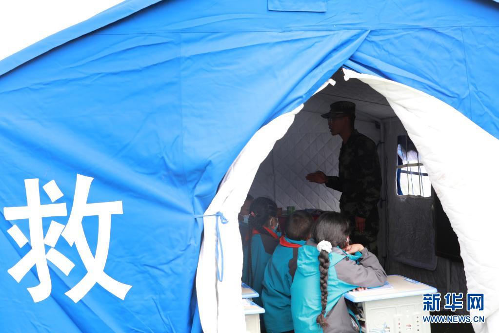 5月24日,武警青海總隊果洛支隊機(jī)動大隊排長張國睿為花石峽鎮(zhèn)藏文中心寄宿制小學(xué)的孩子上課。新華社記者 劉芳 攝