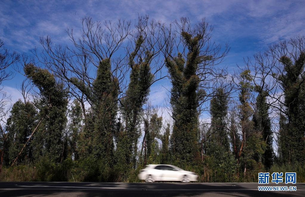 6月1日,在澳大利亞悉尼以西的藍山地區,公路旁遭受2020年夏天山火災害的林地部分植物已經恢復繁茂。