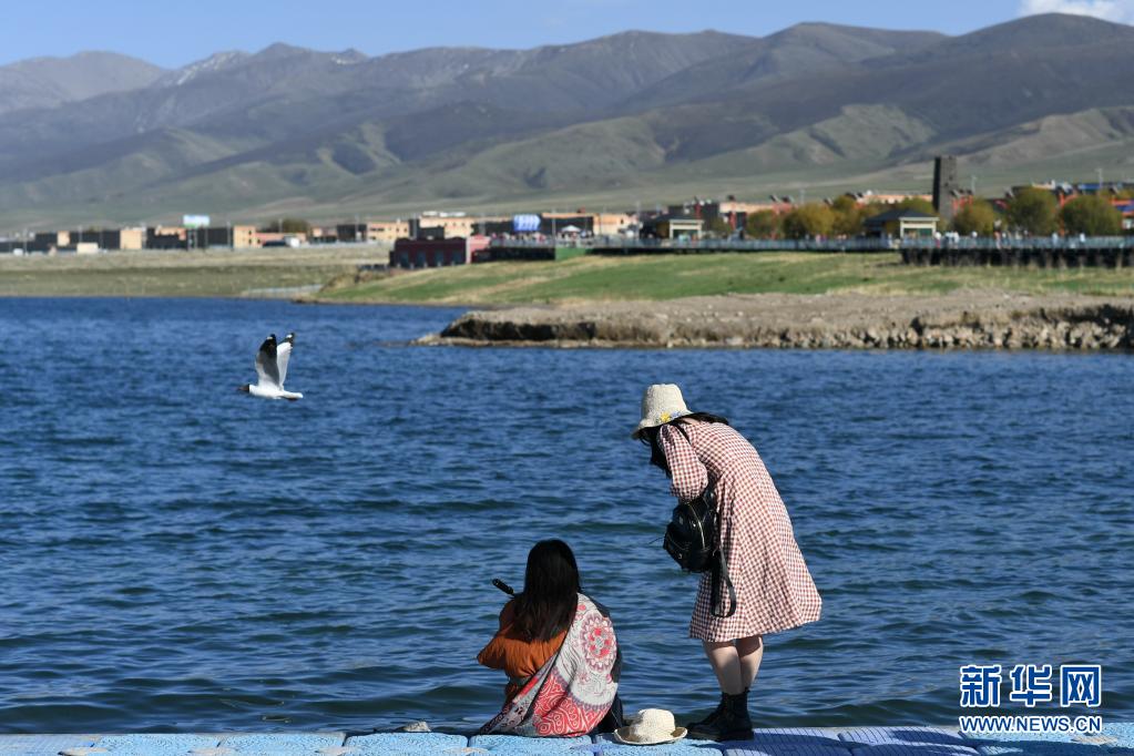 6月4日,游客在青海湖二郎劍景區(qū)內(nèi)游玩。
