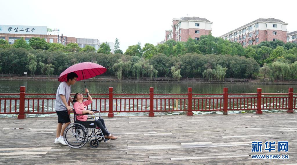 6月2日,趙建軍和母親在校園內散心。新華社記者胡晨歡攝