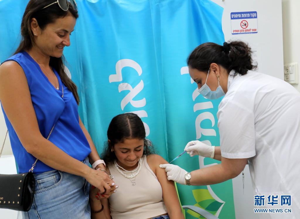 6月22日,在以色列中部城市莫迪因的一處醫療保健服務站內,一名未成年人接種新冠疫苗。
