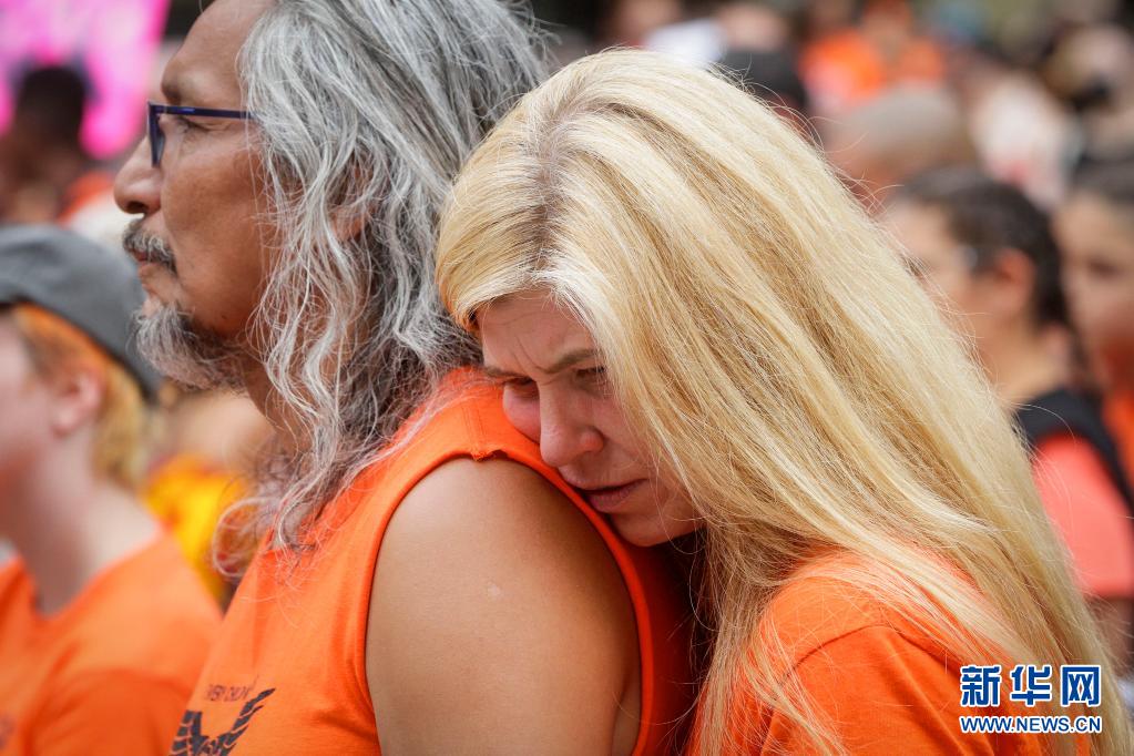 7月1日,抗議者在加拿大溫哥華舉行的集會活動上悼念遭到殘害的兒童。