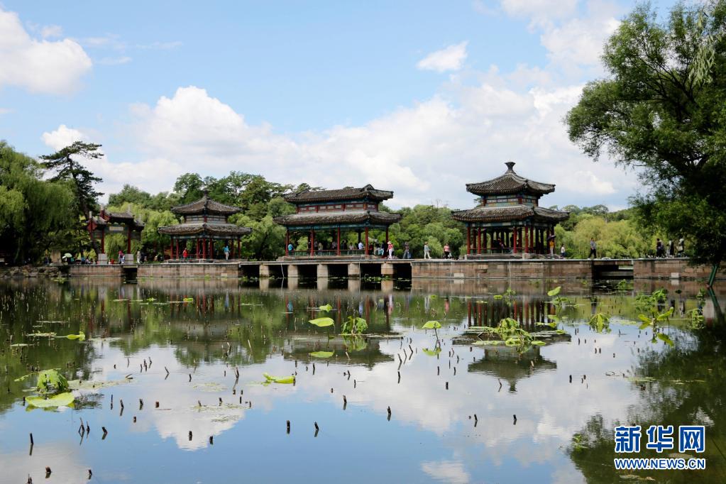 當日,連續降雨過后的河北省承德市天氣晴朗,世界文化遺產承德避暑山莊在藍天白云映襯下景美如畫。