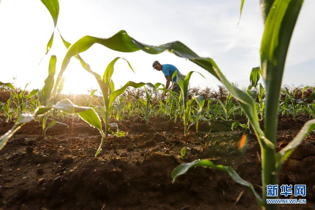 7月5日,河北唐山遵化市新店子鎮東葦店村的農民在玉米地里勞作。