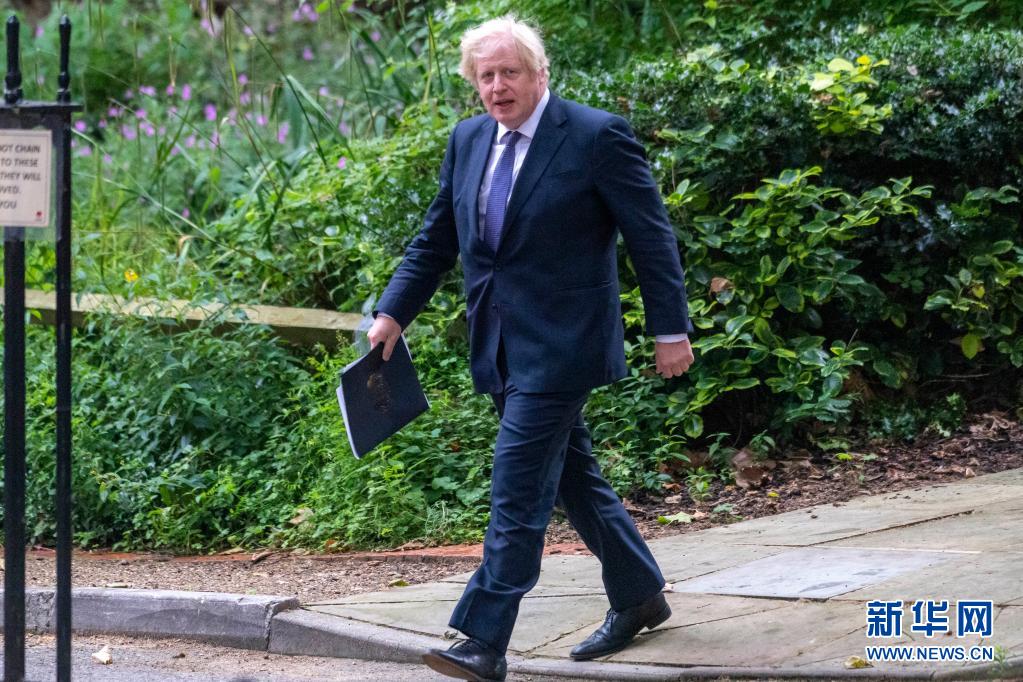 7月12日,在英國倫敦,英國首相約翰遜在參加疫情發布會后返回首相府。