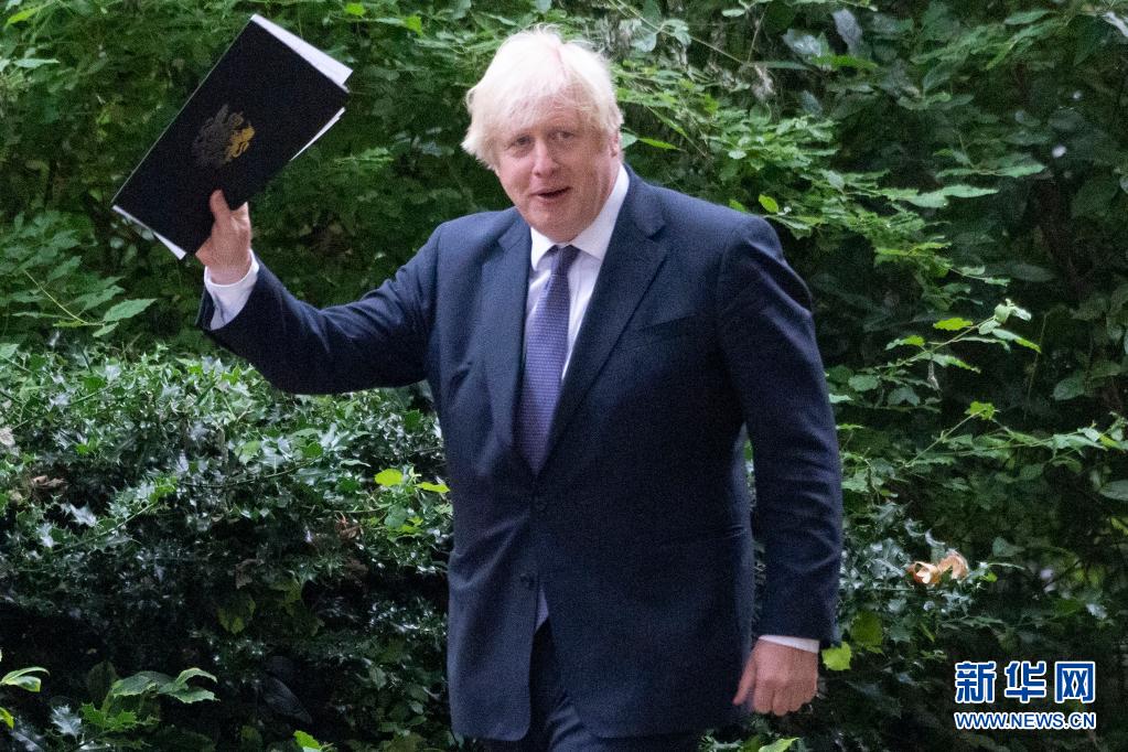 7月12日,在英國倫敦,英國首相約翰遜在參加疫情發布會后返回首相府。