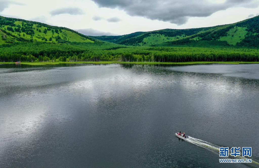 這是7月14日拍攝的阿爾山國家森林公園內(nèi)的烏蘇浪子湖風(fēng)光(無人機(jī)照片)。