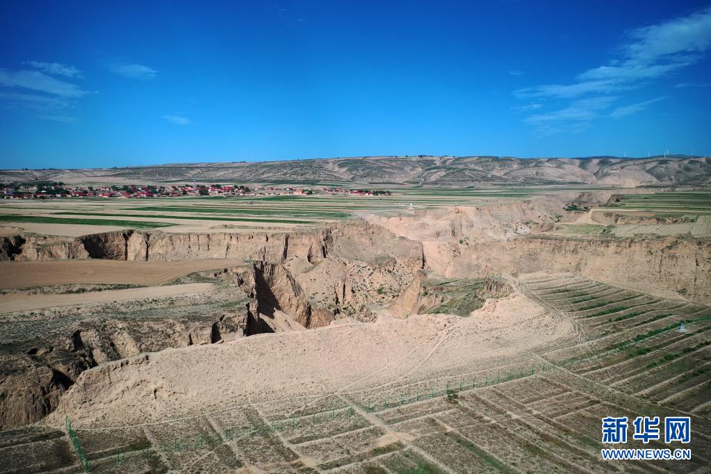 寧夏吳忠市同心縣預旺鎮“抗戰之聲”照片拍攝地(6月21日攝,無人機照片)。