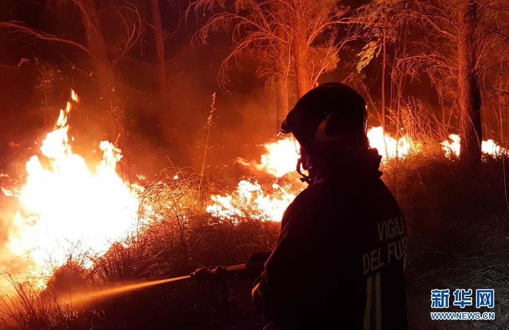 7月26日,消防員在意大利撒丁島參與滅火作業(yè)(手機(jī)照片)。
