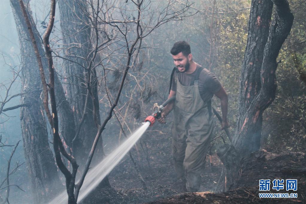 7月29日,黎巴嫩民防人員在阿卡爾省火災現場滅火。
