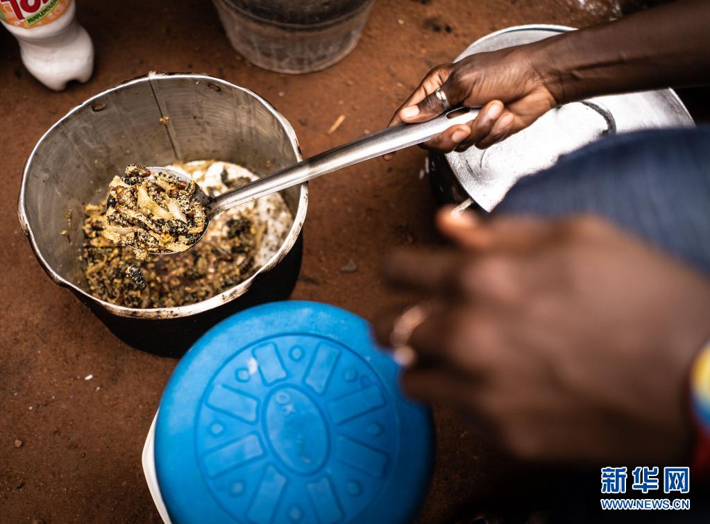 7月20日,當(dāng)?shù)厝嗽谥蟹枪埠蛧?guó)首都班吉郊區(qū)烹飪蟲(chóng)子。