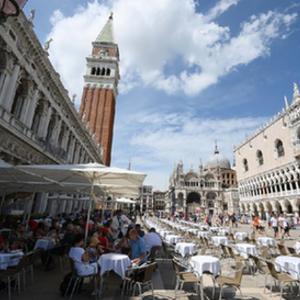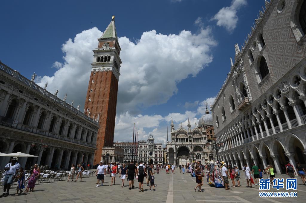 8月3日,游客在意大利威尼斯的圣馬可廣場游覽。