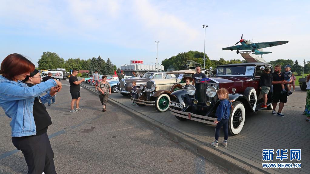 8月14日,白俄羅斯首都明斯克舉辦老爺車展,吸引人們前來觀看。