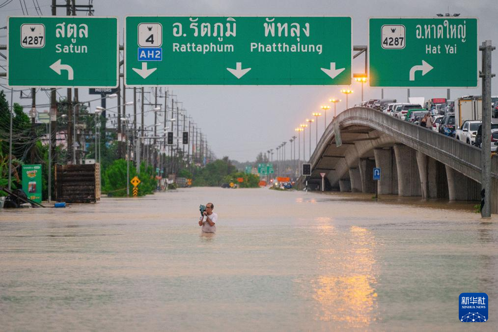 这是11月25日在泰国宋卡府合艾市郊拍摄的洪灾景象。