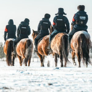 这支队伍任务繁重,工作条件极为艰苦。夏天,紫外线特别强烈,队员们经常被晒到皮肤过敏;冬天,室外最低温度可达-40℃,他们迎风冒雪坚守岗位。在冬季极寒环境下,“海东青”骑警队还要开展冬季抗寒、雪地追踪等专项训练,以保持良好的状态应对各种挑战。