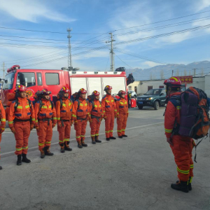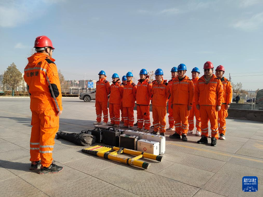 12月4日,新疆阿合奇县消防救援大队集结人员,准备前往震中。