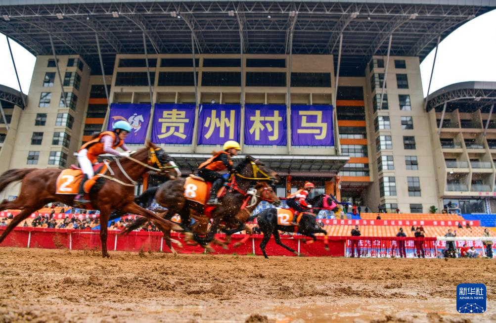 3月7日,选手在贵州省三都水族自治县参加“村马”比赛。