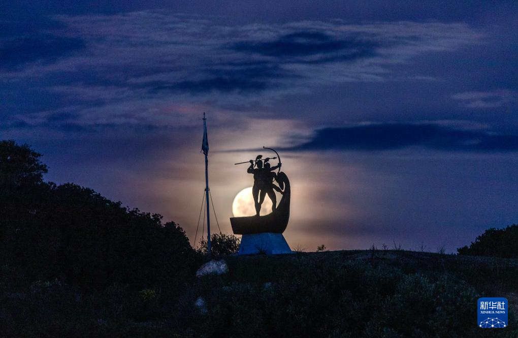 这是3月3日在希腊萨拉米斯拍摄的满月。