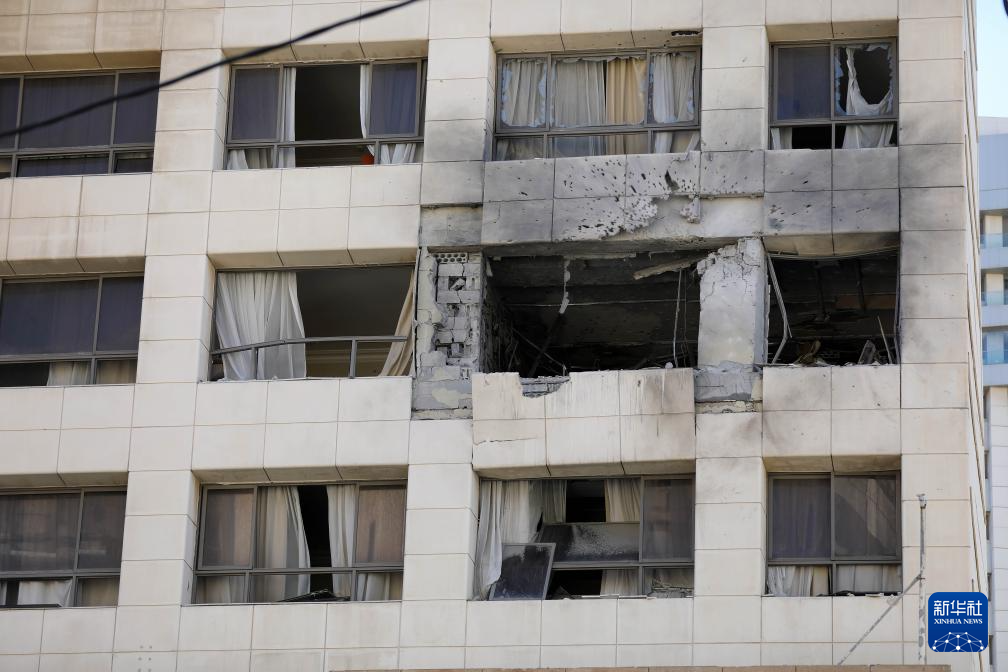 这是3月8日在黎巴嫩首都贝鲁特拍摄的遇袭酒店。