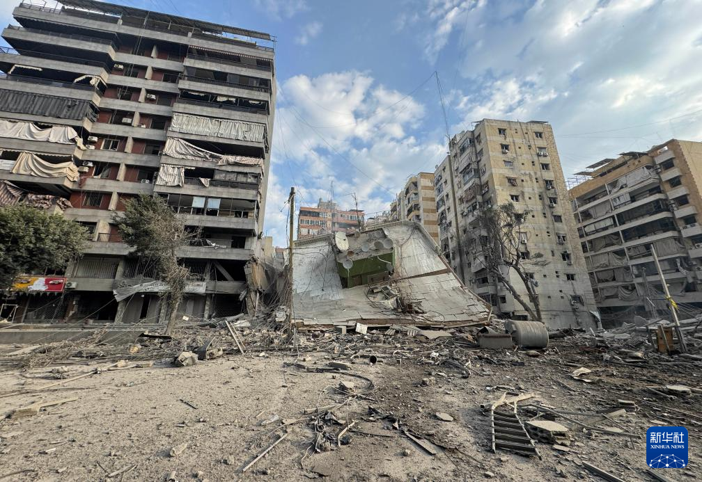 这是3月7日在黎巴嫩首都贝鲁特南郊拍摄的被以色列袭击摧毁的建筑。