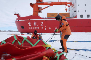 近日,正在执行中国第42次南极考察任务的“雪龙”号抵达南极中山站外围陆缘冰。“雪龙2”号已于北京时间11月25日率先抵达该区域。两船正协同开展中山站区域大规模卸货作业。本次作业将累计完成约2000吨各类物资卸运。按计划,整体卸货作业将持续约15天。据“雪龙2”号轮机长李文明介绍,“雪龙2”号是首次为考察站补给燃油。