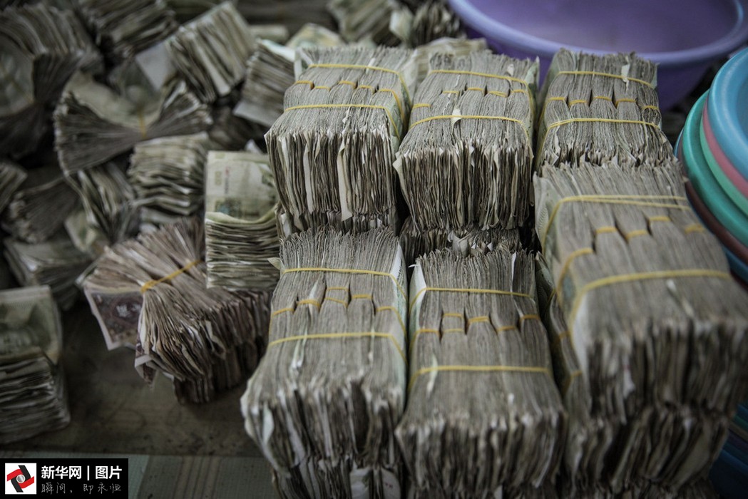 點鈔員從成堆的投幣箱內清理出零鈔準備清點。