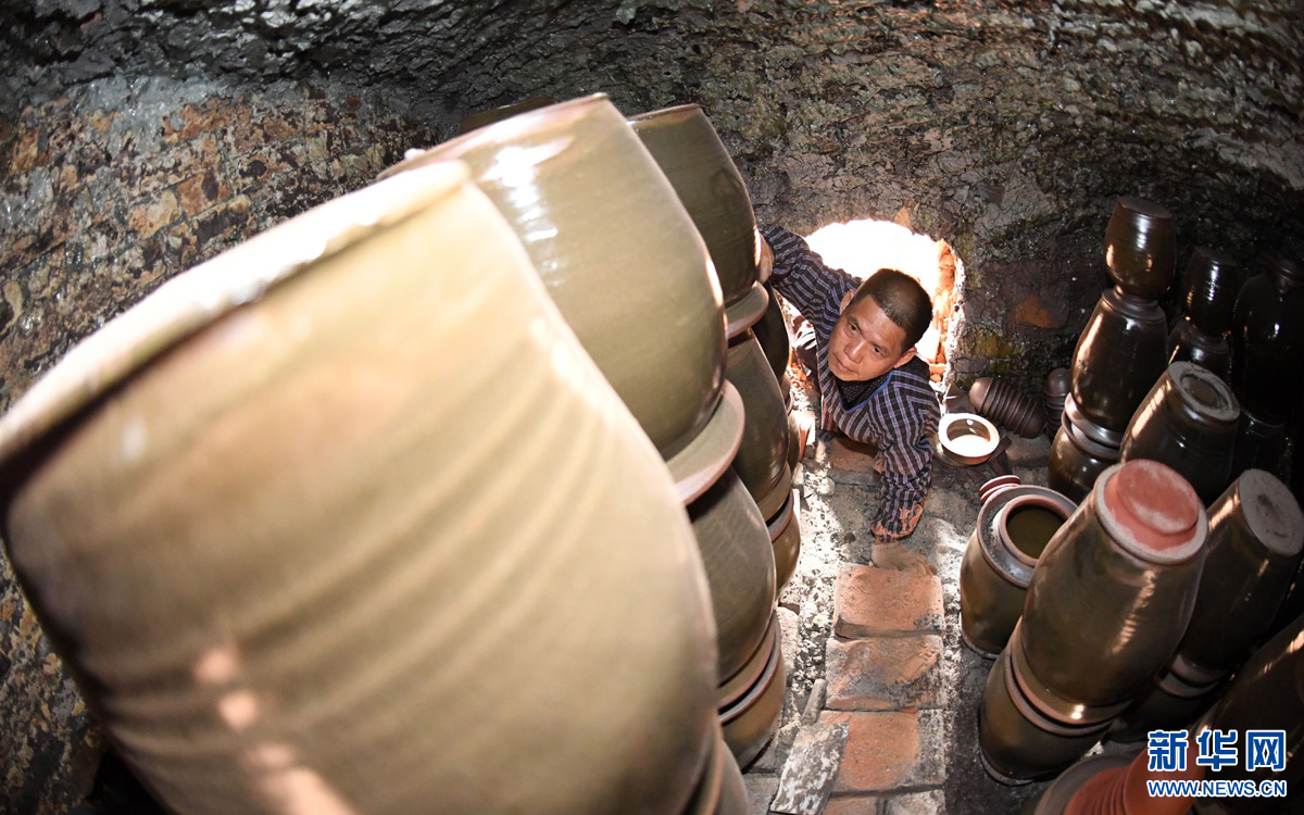 1月5日,在廣西賓陽(yáng)縣鄒圩鎮(zhèn)下窯村,鄒圩陶器制作技藝傳承人顏長(zhǎng)希在窯里查看已經(jīng)燒制好的陶瓷產(chǎn)品。廣西賓陽(yáng)縣鄒圩陶瓷制作已有200多年歷史,制作時(shí)采用本地特有的紅泥,經(jīng)過(guò)采泥、練泥、制坯、晾坯、裝窯、燒制、出窯等多道工序,工藝考究復(fù)雜,被列入廣西非物質(zhì)文化遺產(chǎn)名錄。目前,擁有123戶700多人的下窯村,近70%的村民從事陶瓷生產(chǎn)。近年來(lái),由于受到鐵、塑料等同類產(chǎn)品的沖擊,鄒圩陶器產(chǎn)品的銷售市場(chǎng)不斷滑坡。在當(dāng)?shù)赜嘘P(guān)部門的引導(dǎo)扶持下,當(dāng)?shù)靥账噹煾挡粩嗝鲃?chuàng)新,開(kāi)發(fā)研制更多門類的產(chǎn)品,諸如陶瓷電茶壺、陶瓷電飯鍋等,適應(yīng)市場(chǎng)的需求。他們還在探索將傳統(tǒng)手工藝與體驗(yàn)式鄉(xiāng)村游結(jié)合,讓百年陶藝重?zé)ㄉ鷻C(jī)。新華社記者 陸波岸 攝