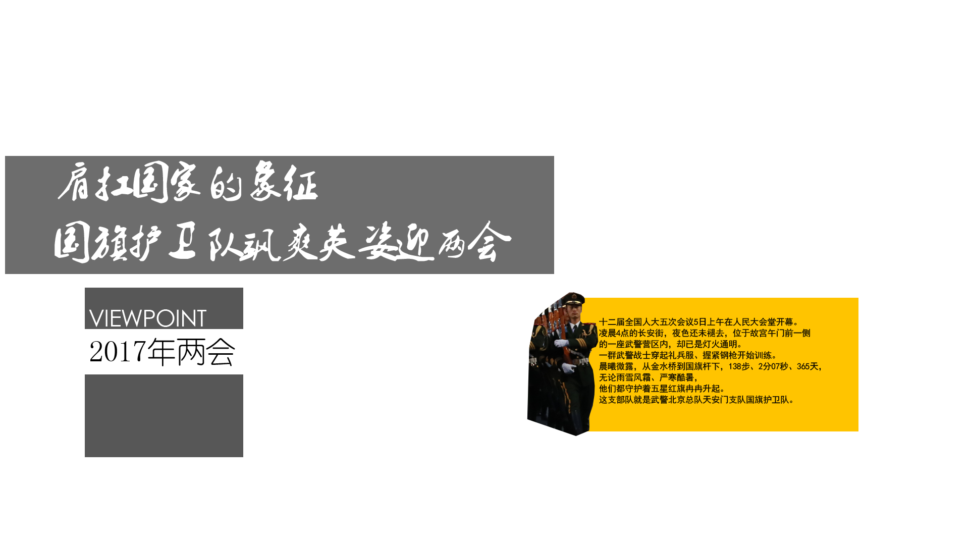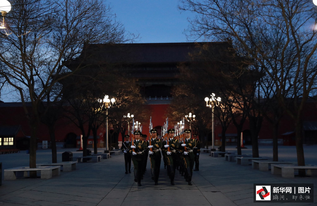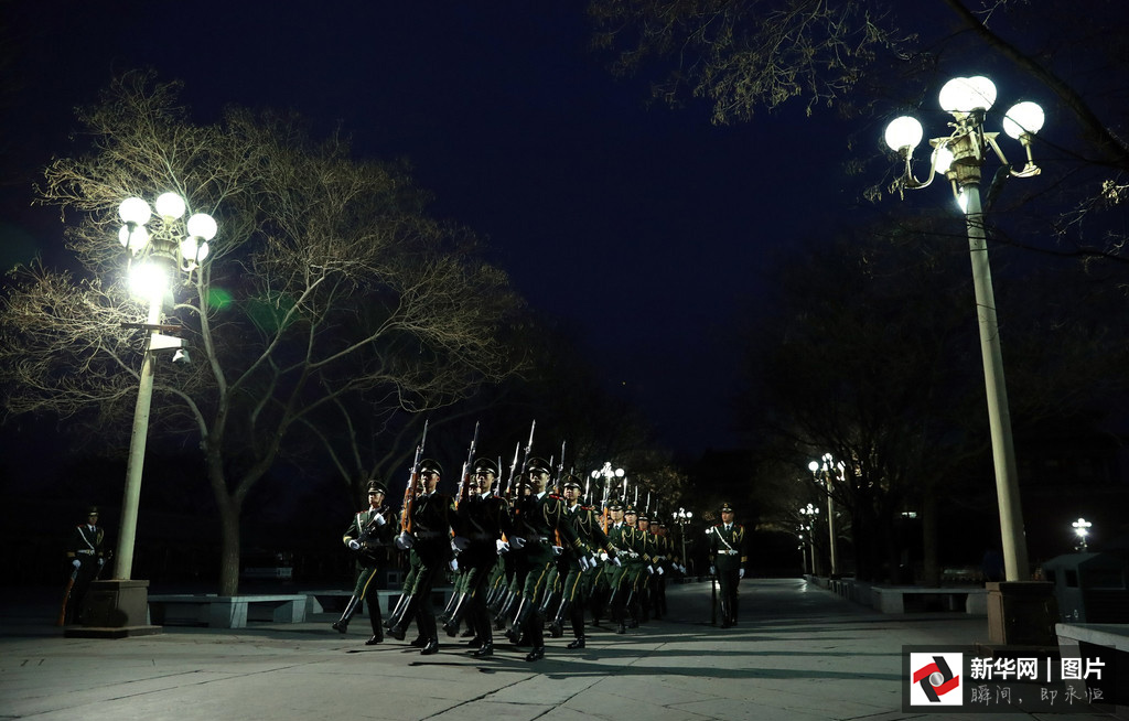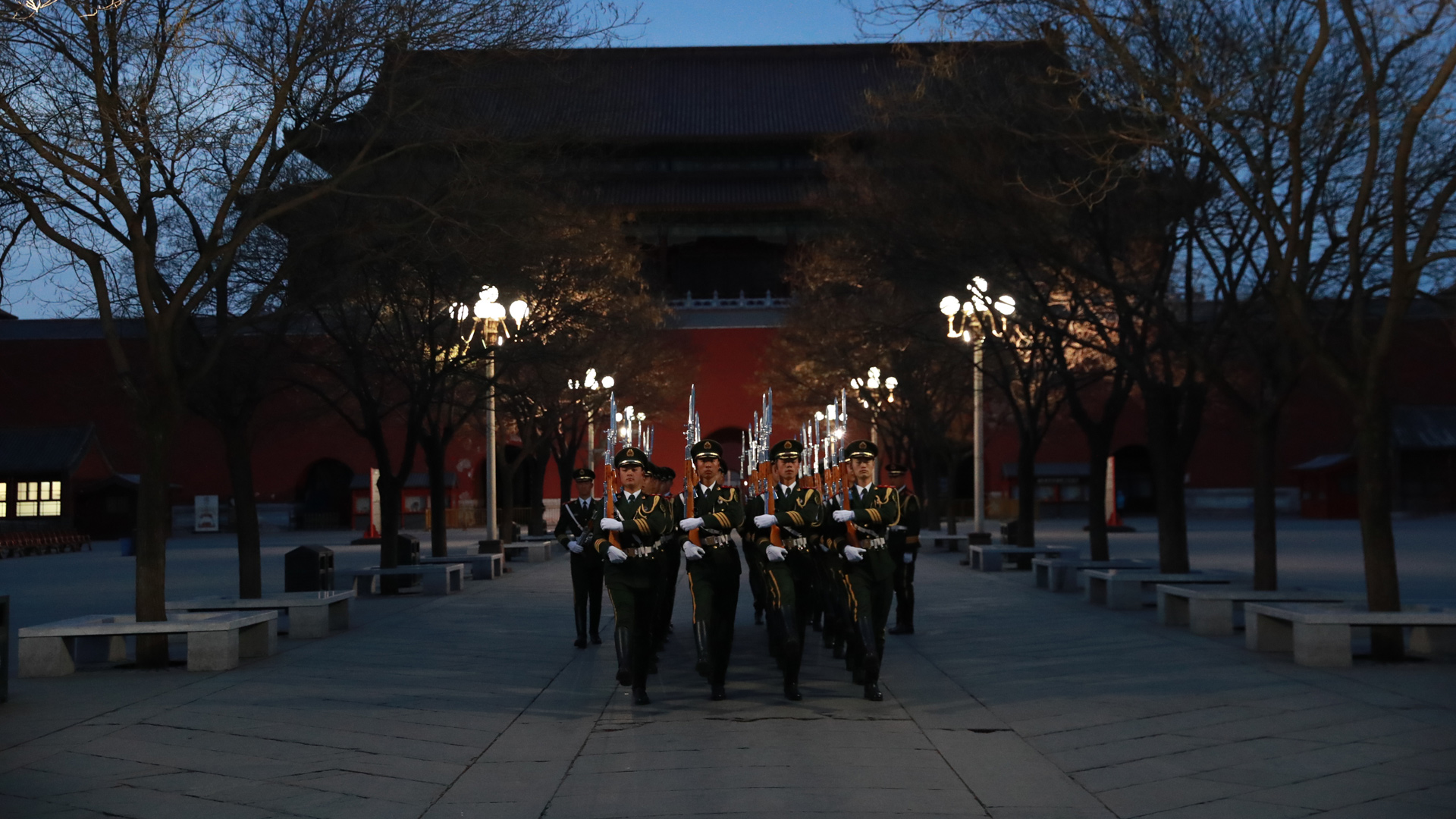 2017年3月5日,第十二屆全國人民代表大會第五次會議在人民大會堂開幕。凌晨4點的長安街,夜色還未褪去,位于故宮午門前一側(cè)的一座武警營區(qū)內(nèi),卻已是燈火通明。一群武警戰(zhàn)士穿起禮兵服、握緊鋼槍開始訓練。晨曦微露,從金水橋到國旗桿下,138步、2分07秒、365天,無論雨雪風霜、嚴寒酷暑,他們都守護著五星紅旗冉冉升起。這支部隊就是武警北京總隊天安門支隊國旗護衛(wèi)隊。