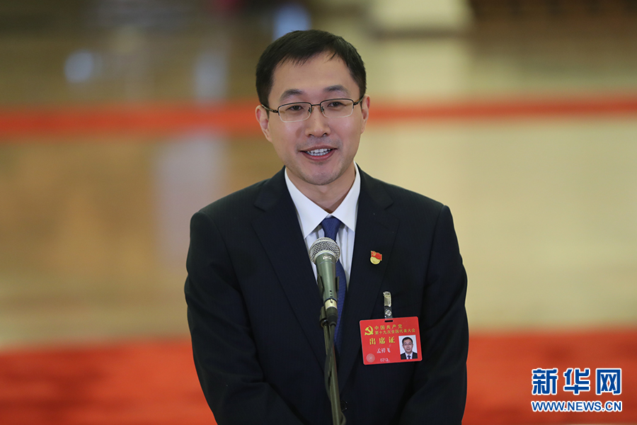 10月19日,“黨代表通道”第二場采訪活動在人民大會堂舉行。圖為孟祥飛代表接受采訪。新華網 翟子赫 攝
