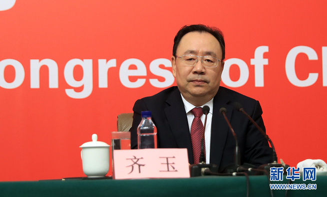 ??? 10月19日,十九大新聞中心舉行記者會(huì),邀請(qǐng)中紀(jì)委、中組部負(fù)責(zé)人介紹黨的建設(shè)和全面從嚴(yán)治黨相關(guān)情況。圖為中共中央組織部副部長齊玉介紹相關(guān)情況。新華網(wǎng) 郝廣鵬攝