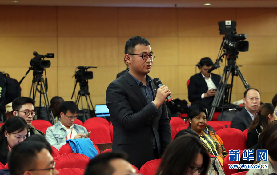??? 10月19日,十九大新聞中心舉辦集體采訪,邀請政法戰線代表談全面推進依法治國。圖為中央人民廣播電臺記者提問。新華網 郝廣鵬攝