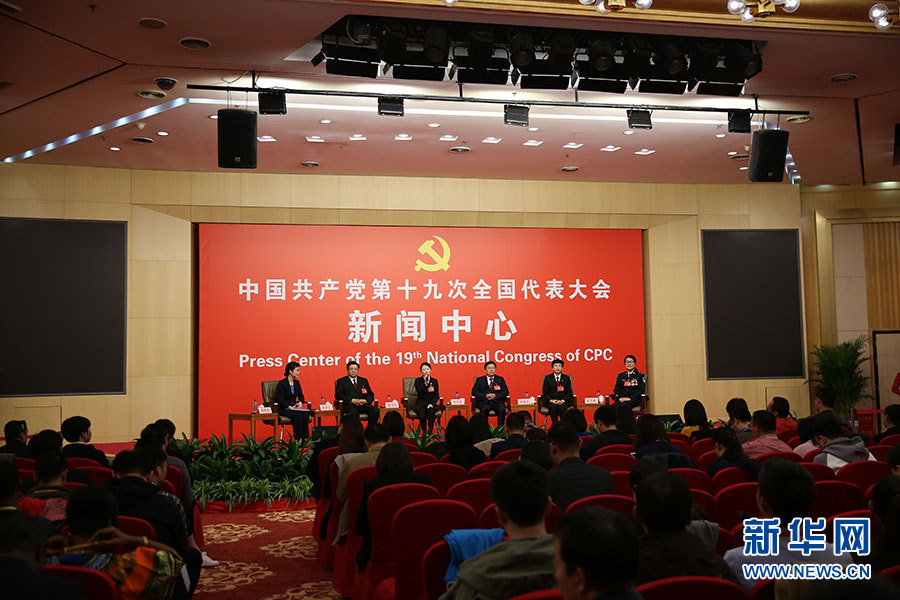 ??? 10月19日,十九大新聞中心舉辦集體采訪,邀請(qǐng)政法戰(zhàn)線代表談全面推進(jìn)依法治國。圖為采訪現(xiàn)場。新華網(wǎng) 郝廣鵬攝